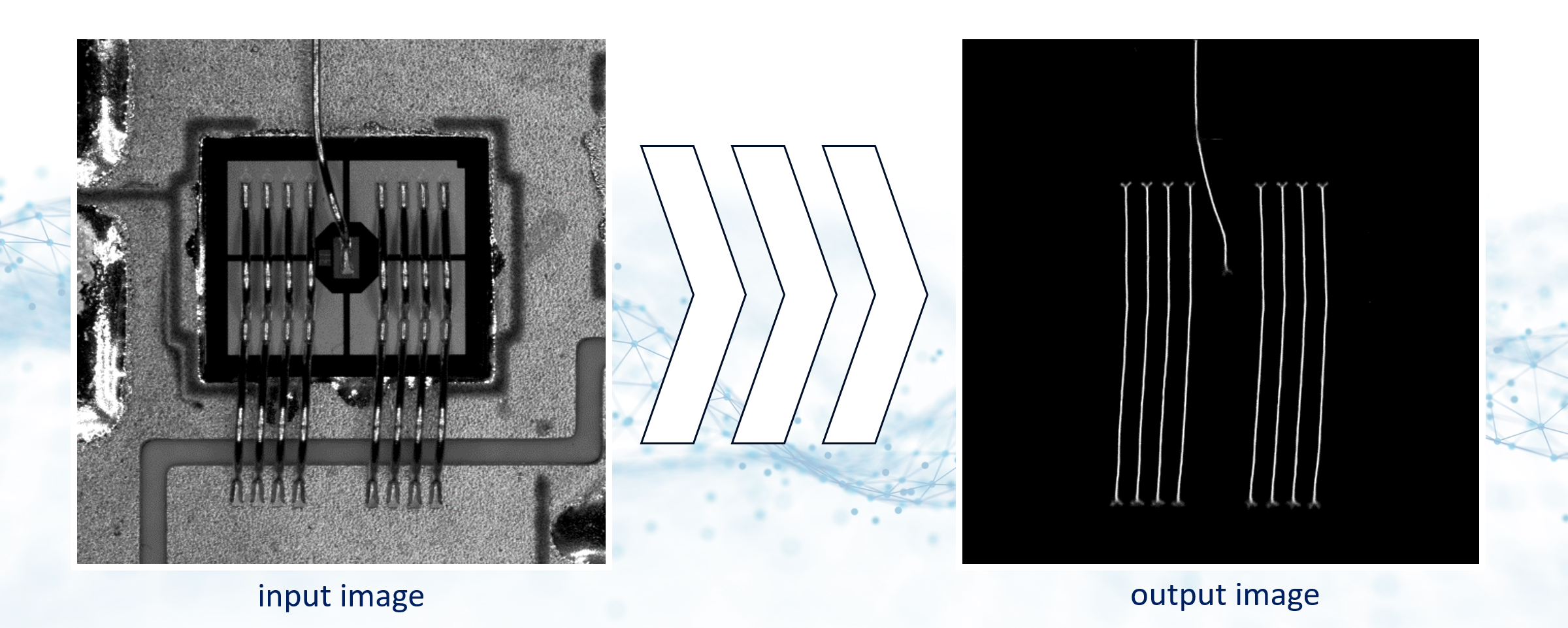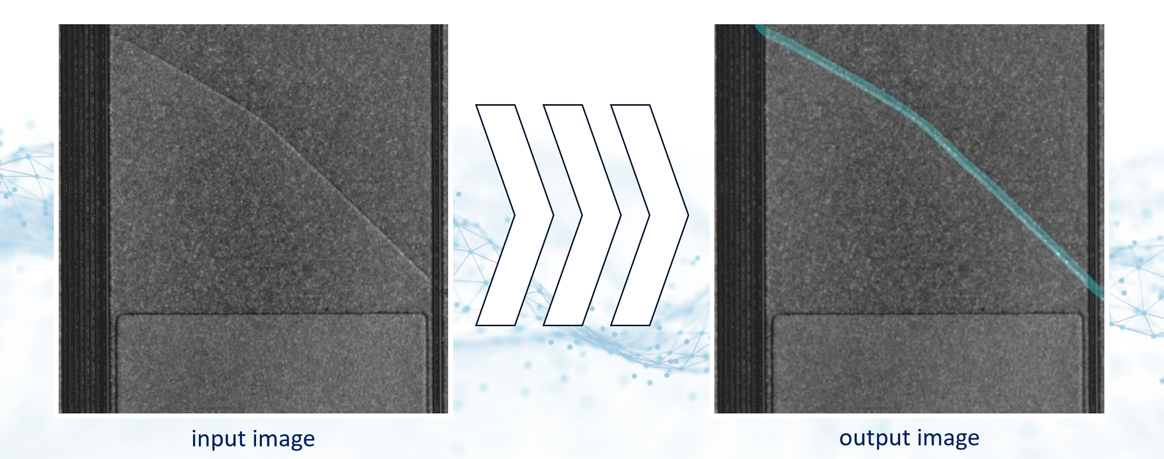 在图像处理领域,即使现有图像信息表现出严重的干扰因素,人工智能也能十分可靠地识别出各个特征。X 射线图中出现的微妙光影差别常常为使用传统方法进行自动检测带来不小的挑战。然而,AI 技术在此种情况下仍能输出可靠的识别结果。经处理的结果将对接现有的检测算法,以便在检测计划中得到进一步的处理。
